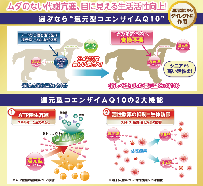 愛犬・愛猫の健康をサポート!「活動量」「皮膚・被毛」の維持に貢献します~ヒトでもおなじみの還元型コエンザイムQ10~
