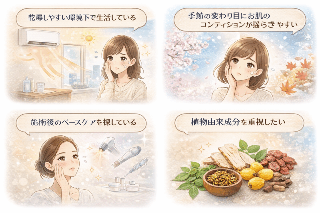 伝統植物の知見と現代皮膚科学的視点を融合させた処方設計は、エビデンス志向の高い医療・美容分野においても検討価値のあるアプローチといえます。