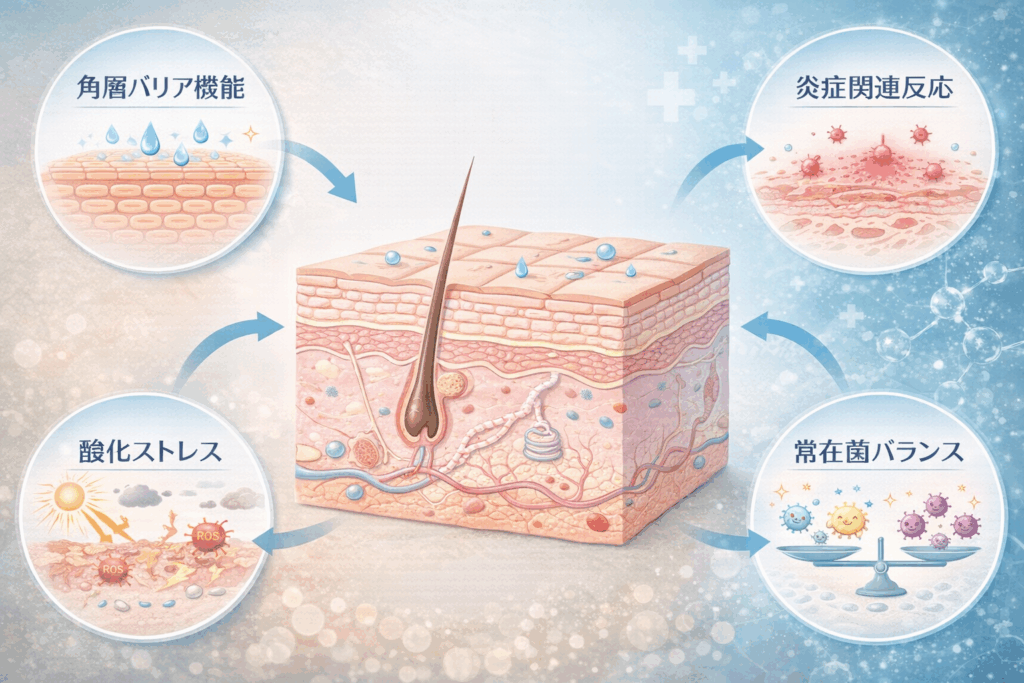 皮膚は、下記のような複数因子が相互に関与し、とても複雑です。